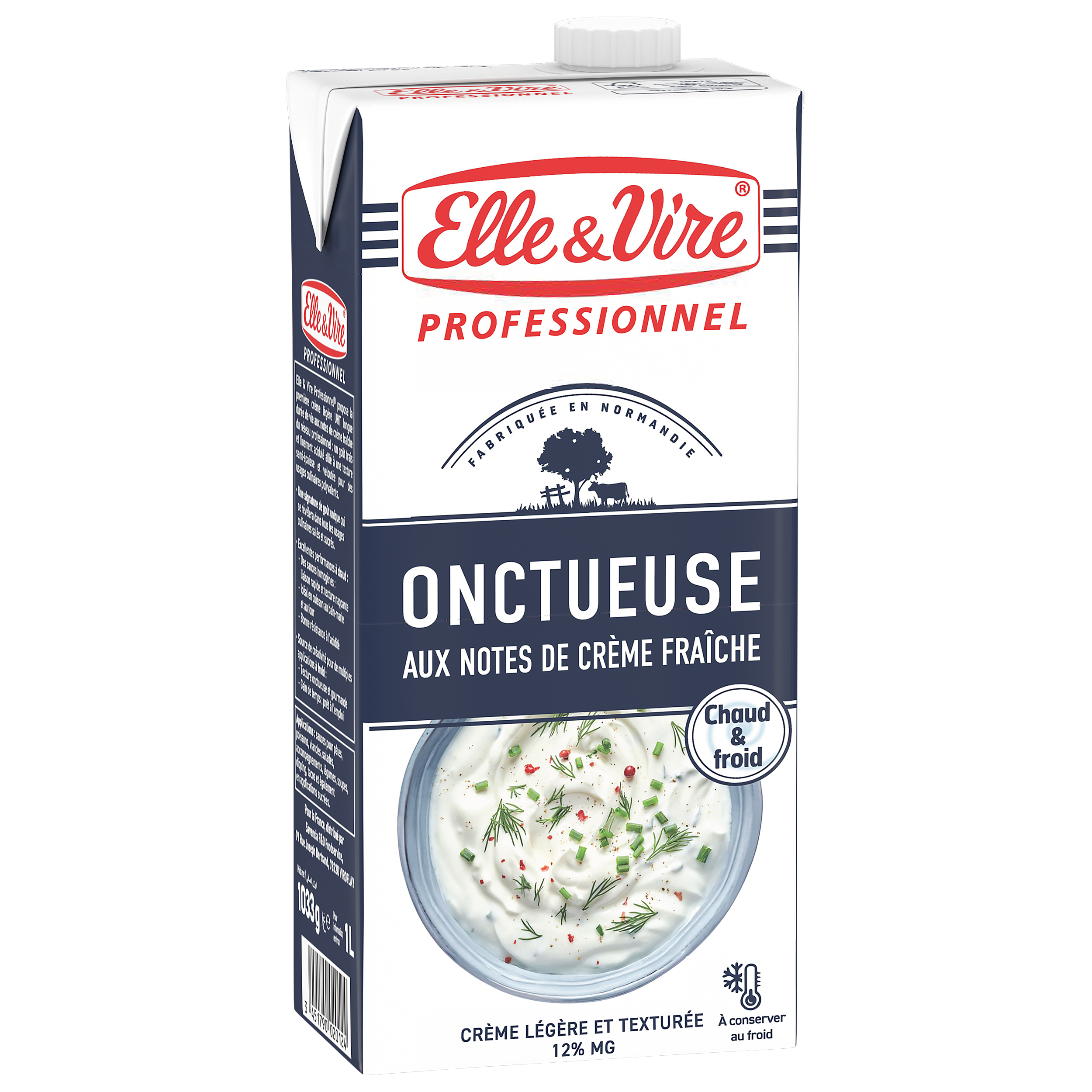 Dernière innovation de la gamme Elle & Vire Professionnel®, découvrez Onctueuse : tous les atouts d’une crème légère avec, en plus, un goût frais et acidulé et une texture unique !