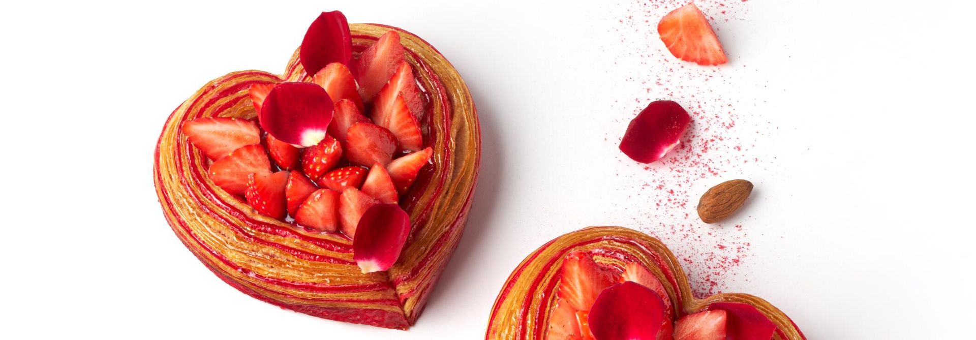 Chaque année, la Saint-Valentin est attendue par les clients. Pour beaucoup, elle est le moyen de dire à une personne qu’on l’aime ; l’occasion de traduire l’amour en douceur et en finesse. Quoi de mieux qu’un cœur pour l’illustrer ? Ici, la surprise est créée par une viennoiserie feuilletée en forme de cœur.