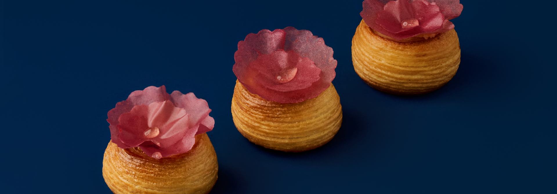 Laisser pousser 2 heures à 27°C. Préchauffer le four à 210°C. À l’aide d’une poche, garnir la viennoiserie poussée de riz au lait, puis cuire à 180°C pendant 20 minutes. Démouler et laisser refroidir complètement. Garnir avec la gelée fraise.