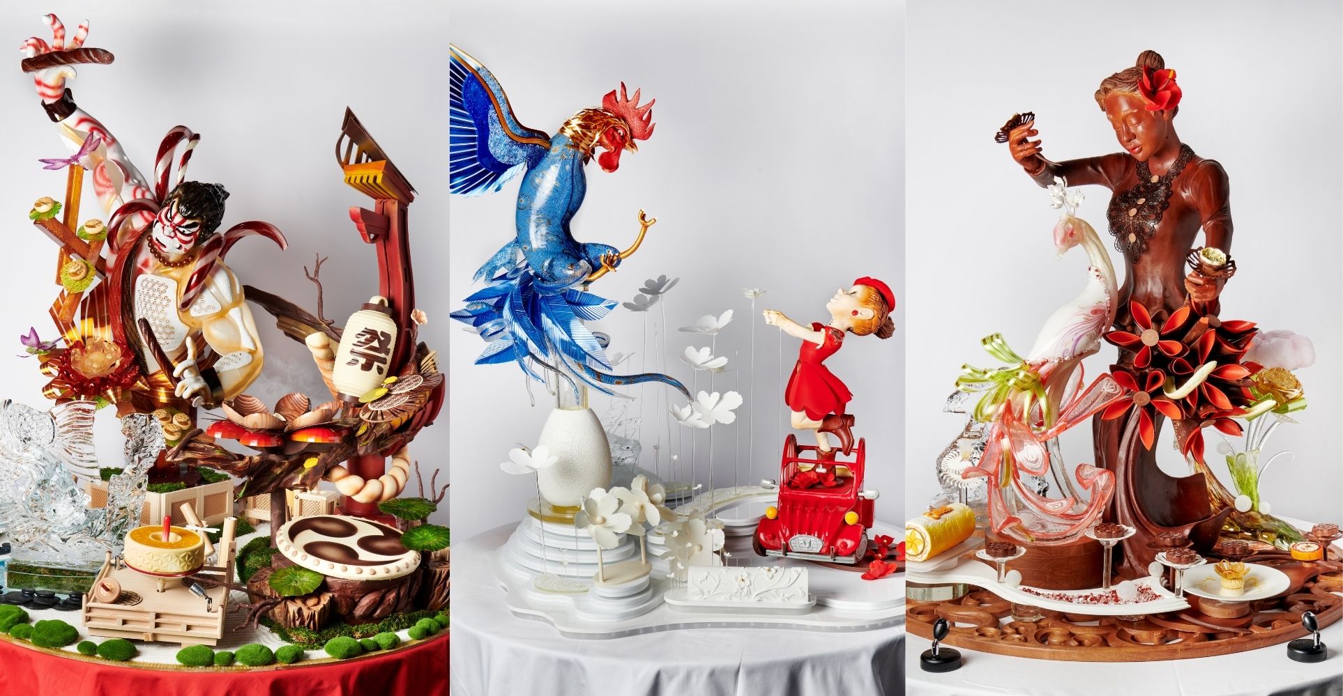 L’équipe de France, composée d’Haruka Atsuji (chocolatière), Jérémy Massing (expert en sucre) et Mickaël Guyader (maître glacier), a su valoriser le savoir-faire français à travers des créations alliant tradition et modernité, notamment avec un splendide coq bleu en sucre faisant face à une jeune fille sur sa 2CV rouge.